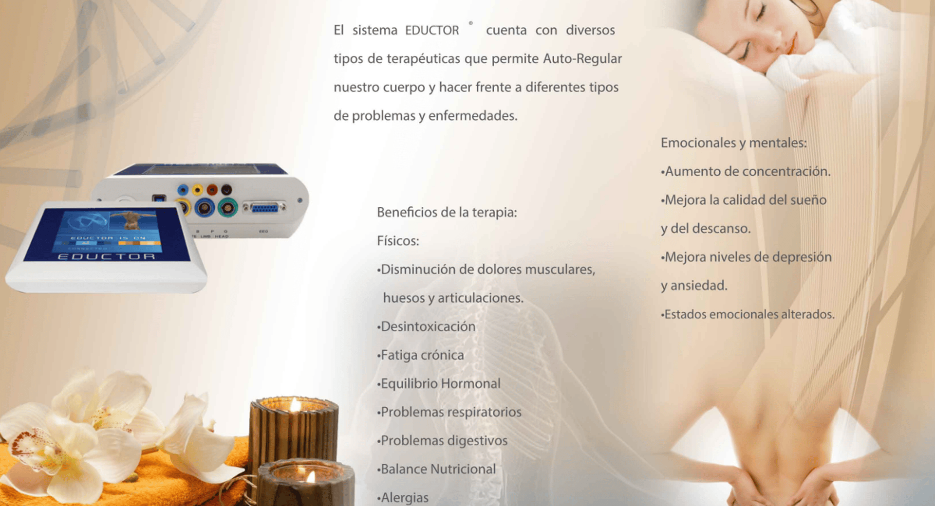 El sistema Eductor realiza un intercambio de información con el campo (biofeedback) no solo de una frecuencia, sino de más de 10,000 frecuencias. Además, cuenta con una amplia variedad de tratamientos que interactúan con campos como células, tejidos, órganos, sistemas orgánicos, emociones, mente y energía. El Especialista en Bienestar Integral y Biofeedback con Sistema Eductor utiliza estas herramientas, y en base a sus conocimientos y experiencia, envía la información adecuada al campo interactuando con la persona y el sistema.
